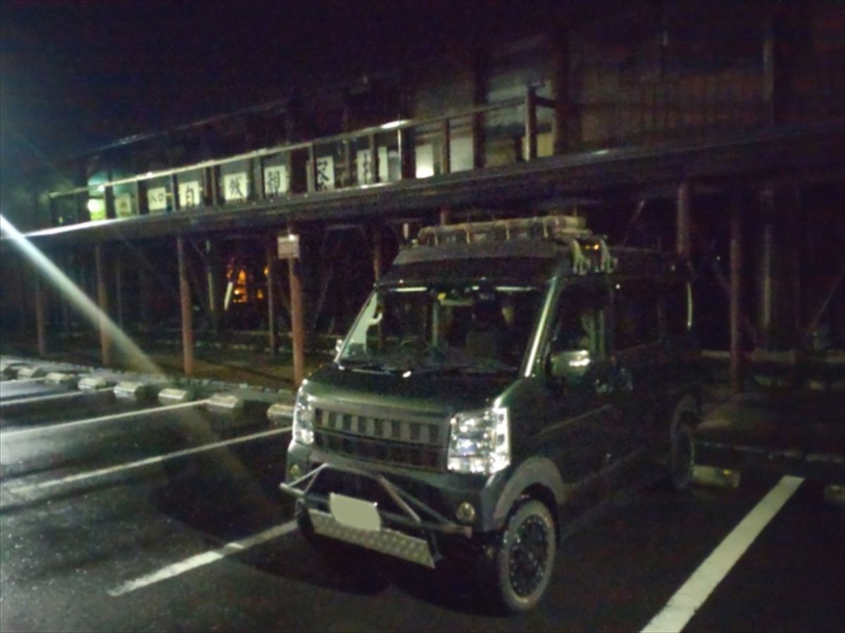 ここは駐車場が斜めですが、寝やすくなるように頭側が高くなるように車を停めます。