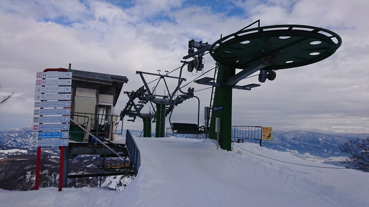 このスキー場で一番高いところに行く第13リフトに乗ってみます。一人乗りですね。