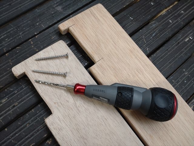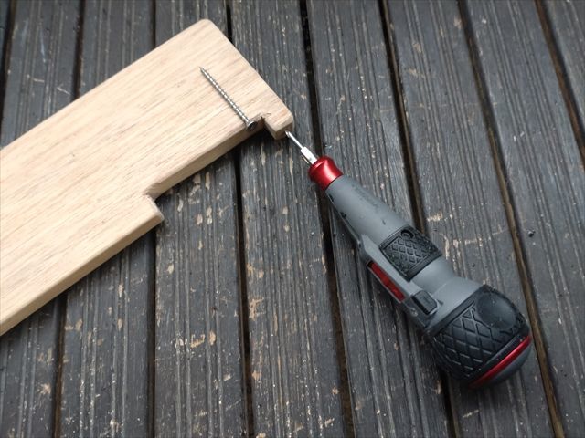 割れやすいので先にドリルで穴を開けてからネジこみます。