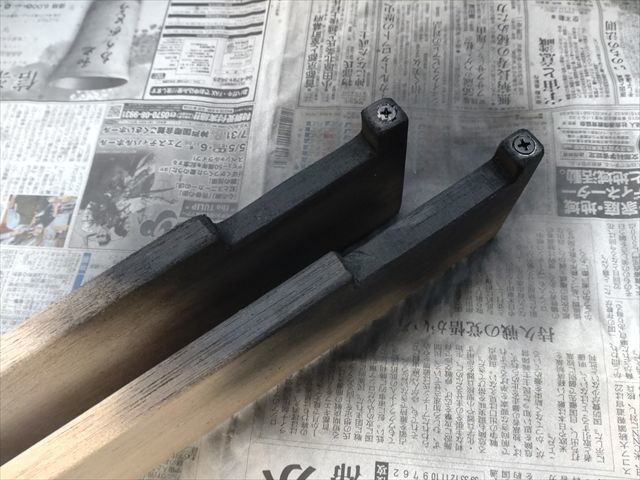 レバーの所はカバーが開いていて見えるので、染Qで黒く塗りヒートガンですぐに乾燥させました。