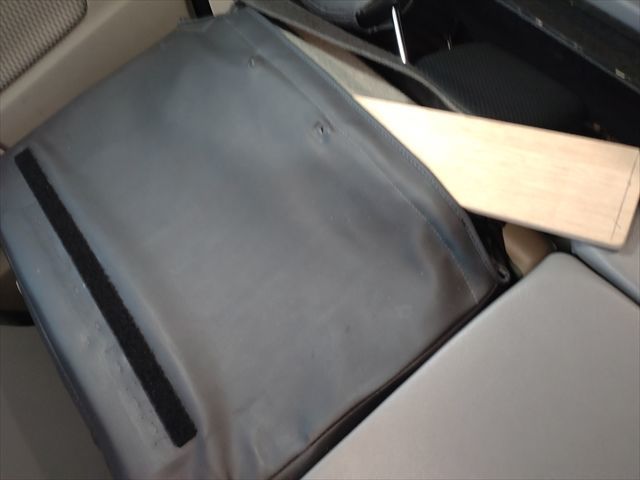 後部座席真ん中のひじ掛けにも受けの板を入れます。