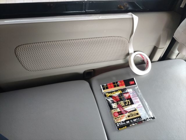 ついでにリアゲートにカーテンを止めるマジックテープもライトグレーに貼替えました。