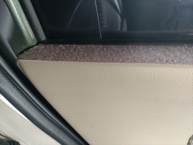 後部座席のようにドアの窓枠横に貼った方がスッキリしそうですが、前側のカーテンは丈が長いので暫く使ってみてからどうするか考えましょう(^^)