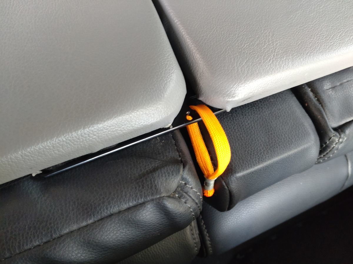 隙間に押し込んで使い外す時のためにオレンジ色のベルトを付けて引っ張ることにします。