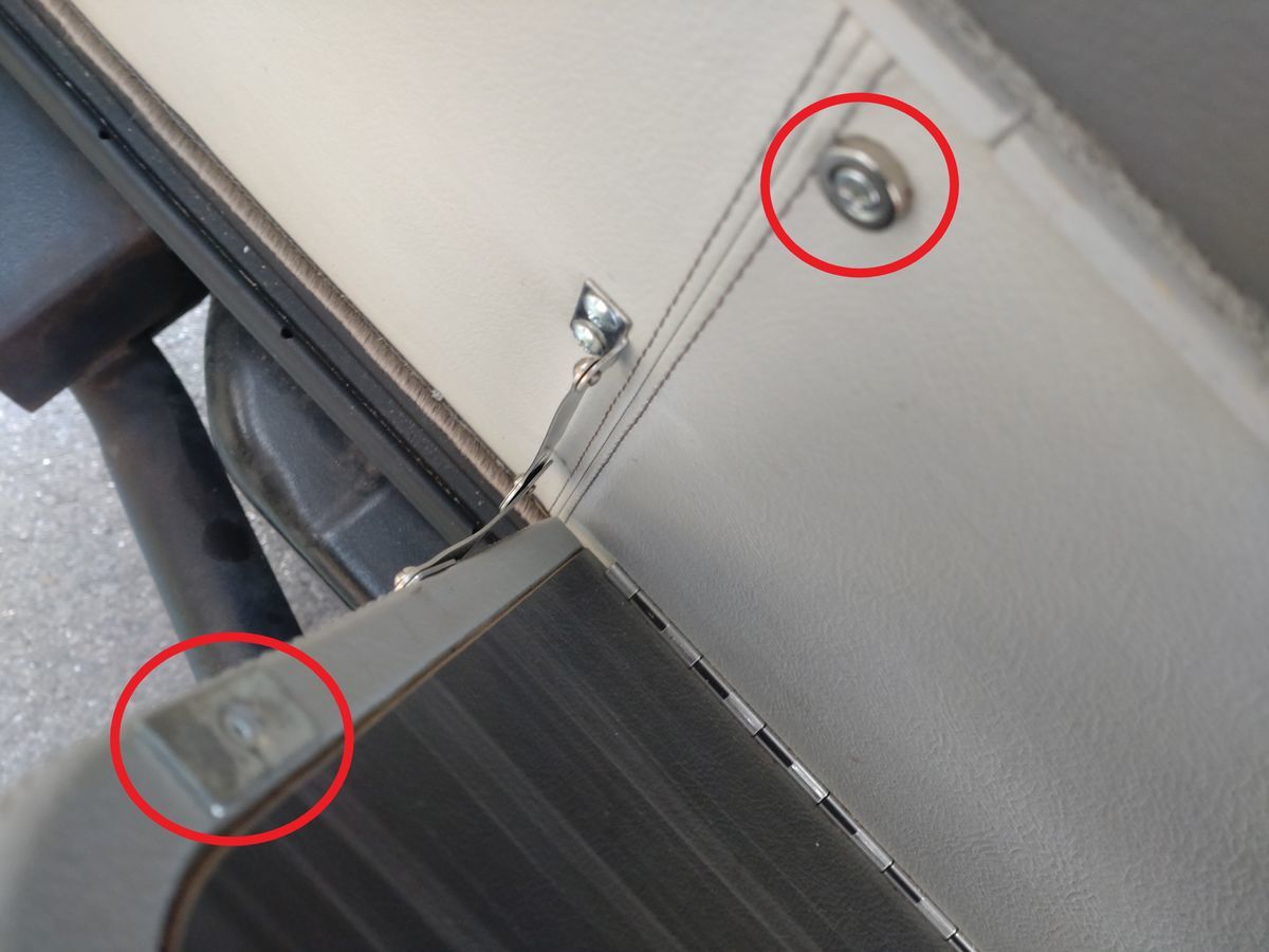 このベッドボードを受ける板はシートカバーの中に入れます。