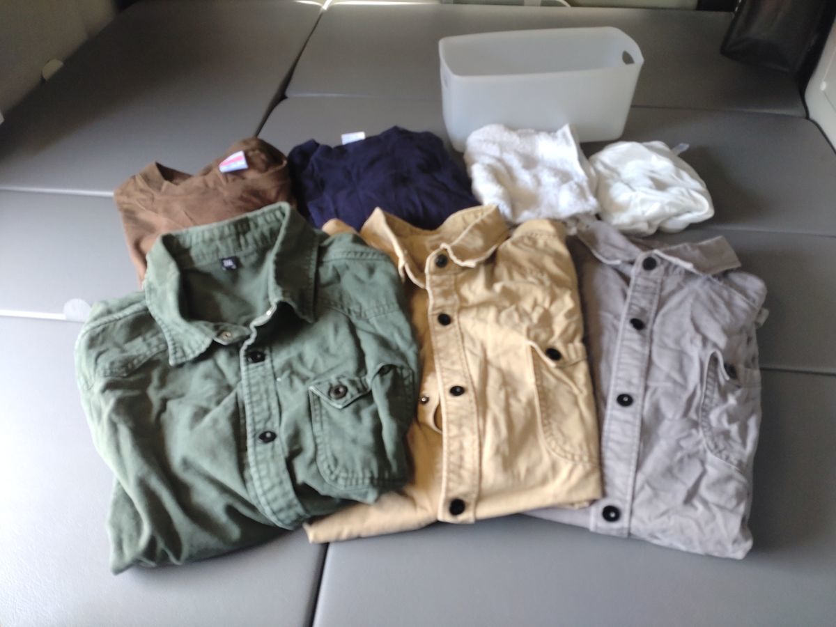 実際に車中泊キャンプに行く時には、シュラフやアウターなどもその時の気候に合わせて持参します。