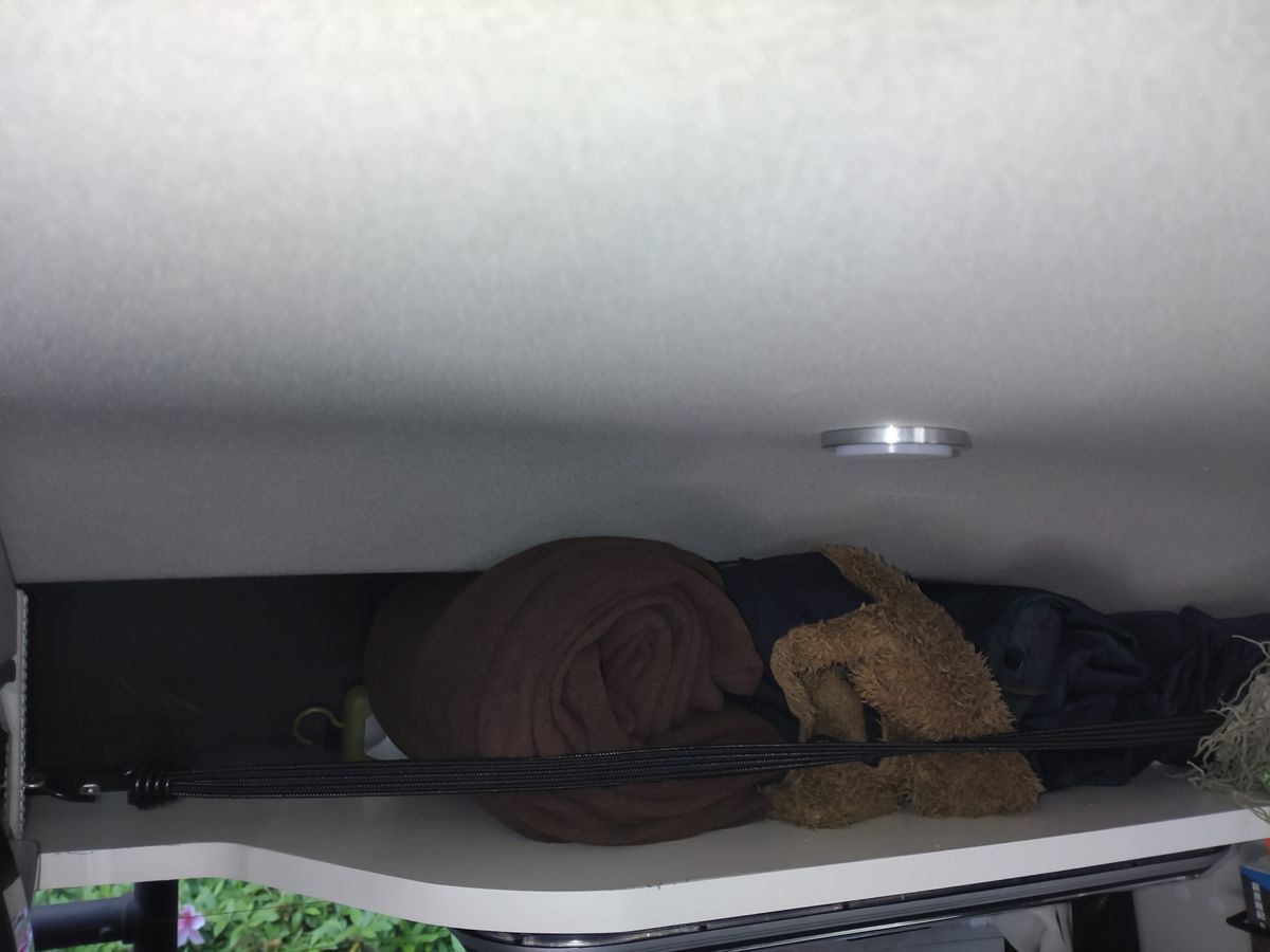 暗くなってからリアゲートを開けて軽キャンパー内のアイテムや食材を出し入れする時の灯りとしてLEDライトを取り付けています。