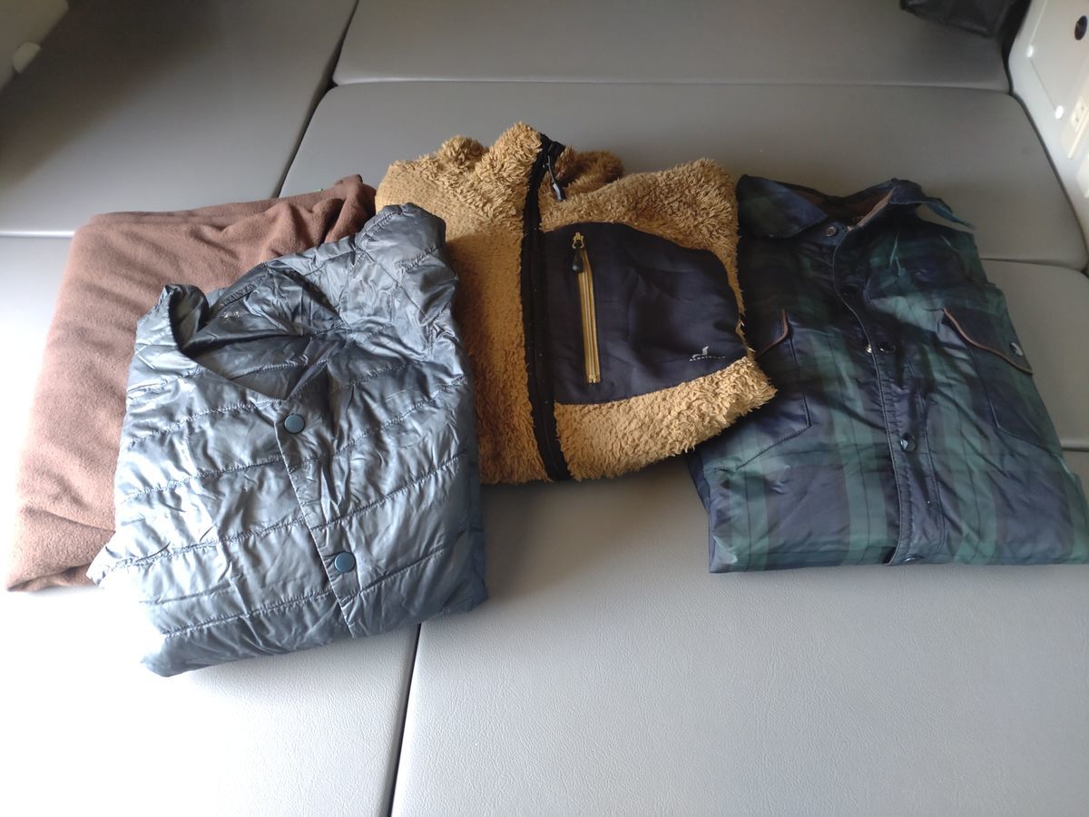以前は枕を置いていましたが、今は夜など寒い時のためにひざ掛けやフリースジャケット、ユニクロダウンベストなどを置いています。