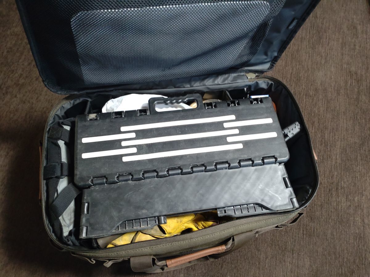 ガンケースに冬は何も入れていませんでしたが、これからのキャンプ始動に向けてソフトコンテナバックなどに入らないアイテムを入れています。