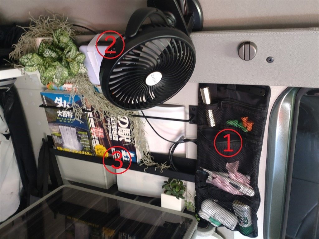 - 先日自作した運転席横の小物入れ内のアイテムです