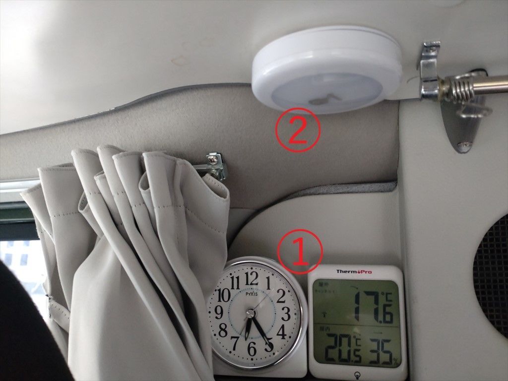 時計と車内外の温度計、タッチセンサーライトを付けています。