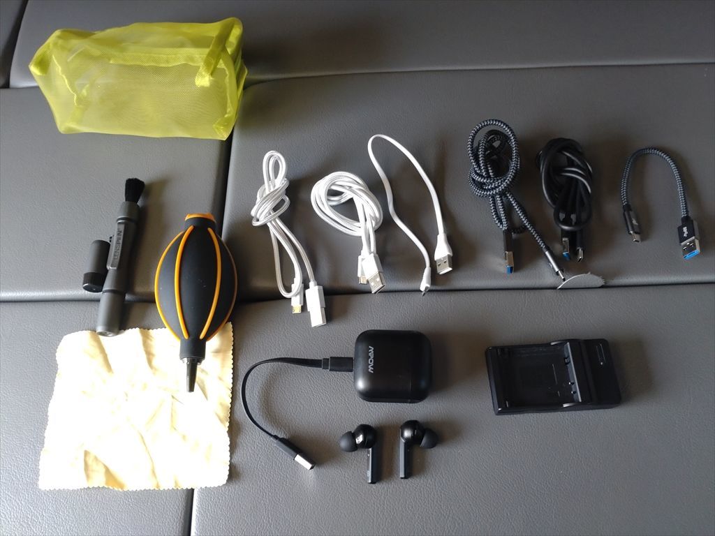 Bluetoothイヤホン、デジカメのバッテリー充電器、デジカメレンズメンテナンス用品などを入れています。