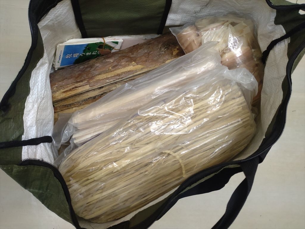 今はこの軽くて薄いバックをメインに薪を入れて置いています。