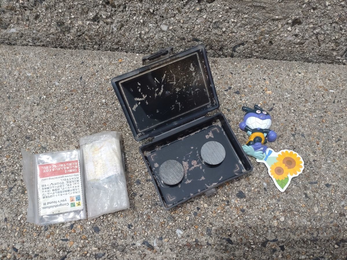 中に入っているジオキャッシュ(宝)を貰うならば同等の宝を入れておく物々交換がルールです。