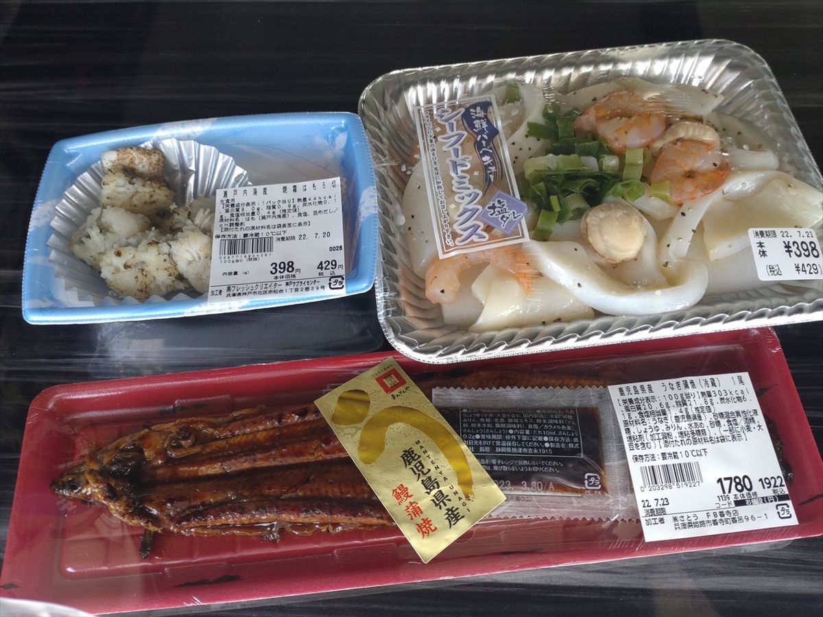 2日目は土用のウナギの日も近く、小さめですが国産ウナギを奮発し海鮮食材です(^^)