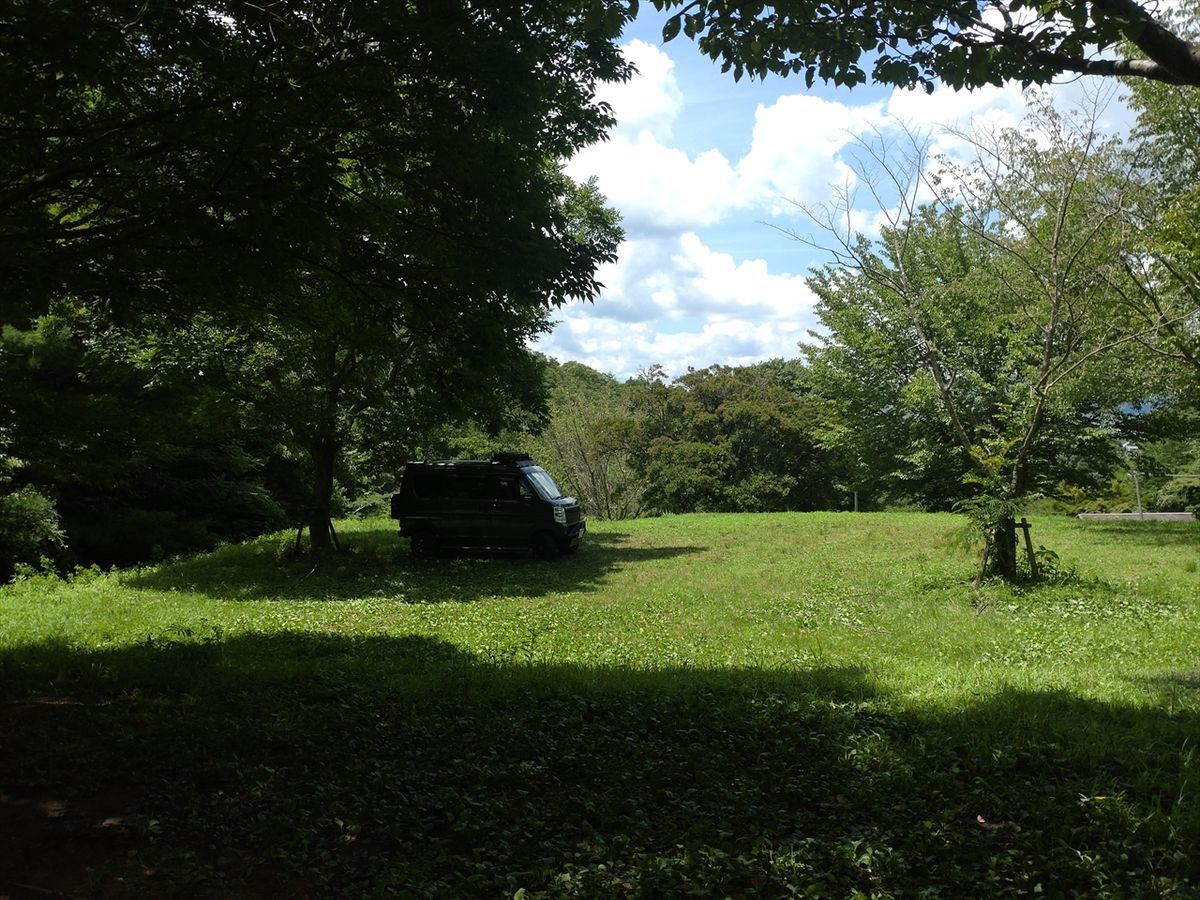 せっかくキャンパーが少なく広いキャンプ場で近くに寄ってキャンプすることも無く、右側の道のエリアは止めました。