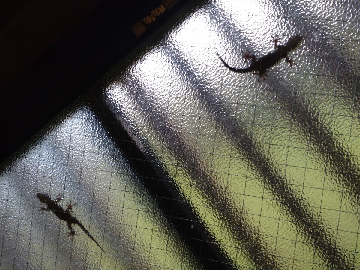 ヤモリがトイレのガラスの外に居ました。昔の家では良く居ましたが久しぶりに見ました(^^)