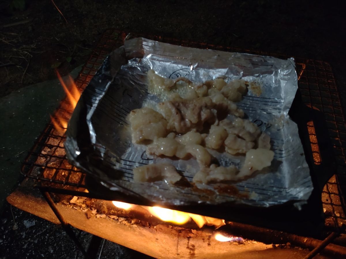 コンデジを三脚で固定して撮影してみましたが、ピントが焚き火台辺りに合っていて、手前でチャークロスに火を点ける時などボケています(^^;