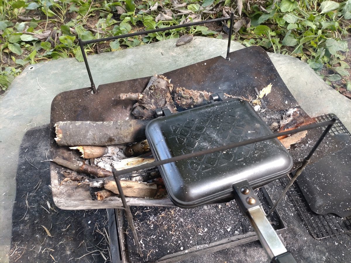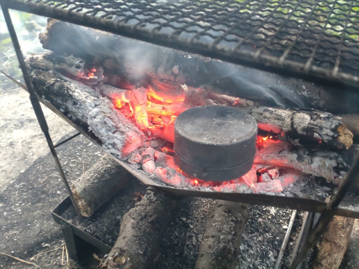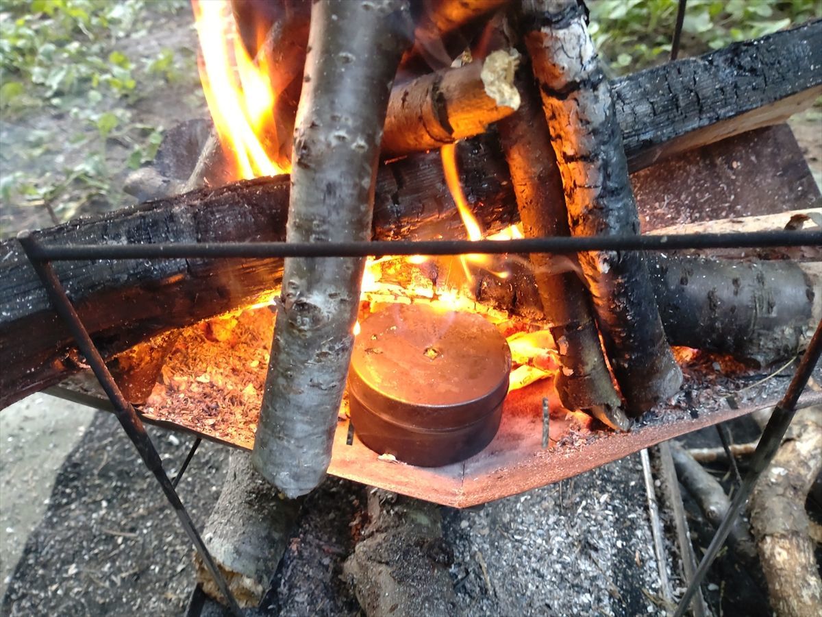 煙や炎が出なくなったら焚火から下ろして冷えるのを待ちます。