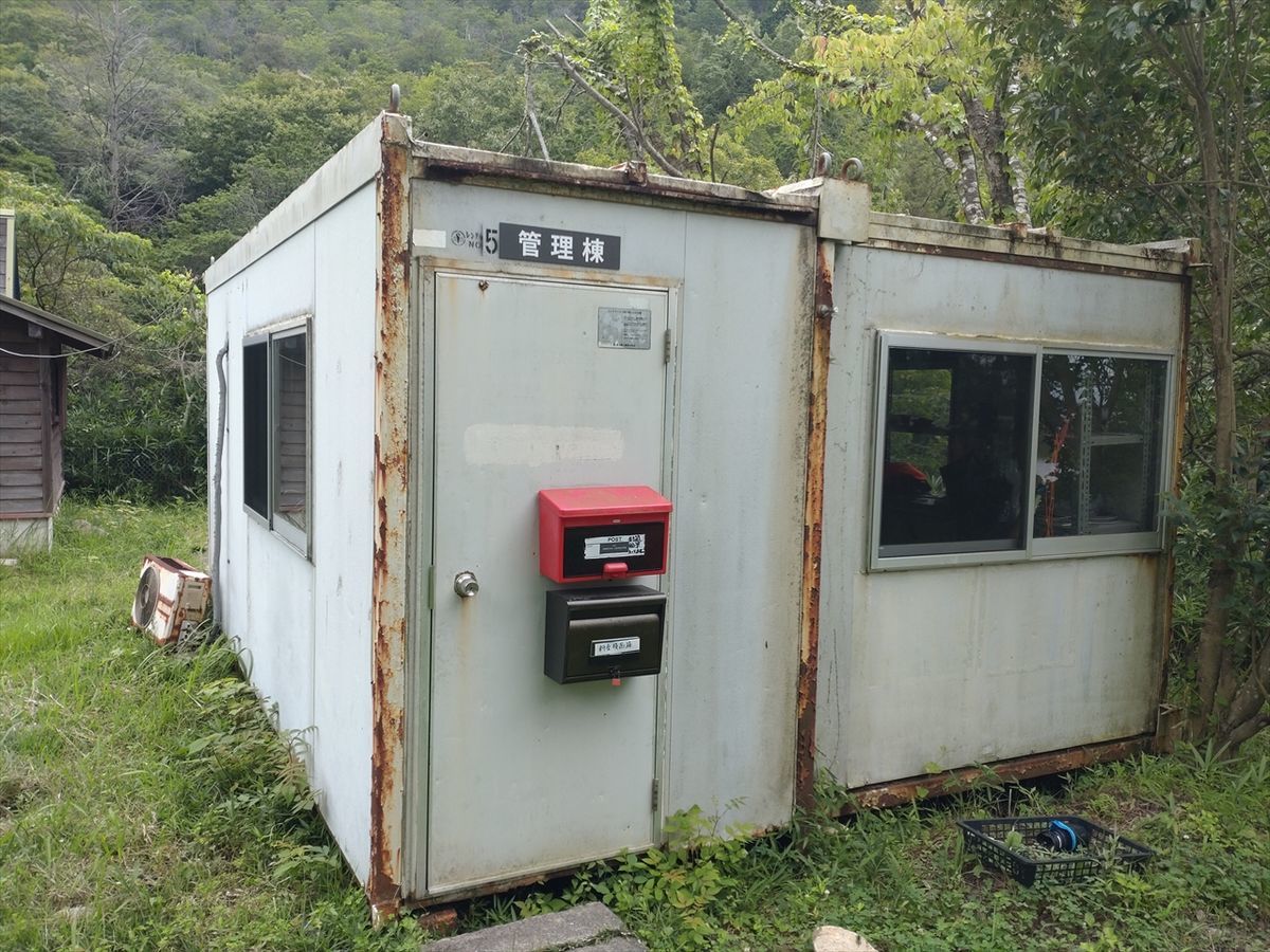 側に乾燥中の薪などがあり、管理用建物かと思われます。