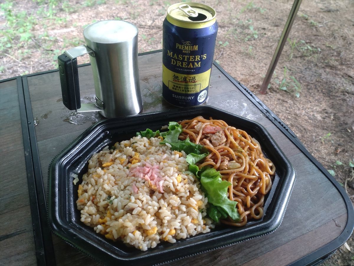 昨日買っておいた弁当を電子レンジでチンし、喉が渇いたのでビールです(笑)
