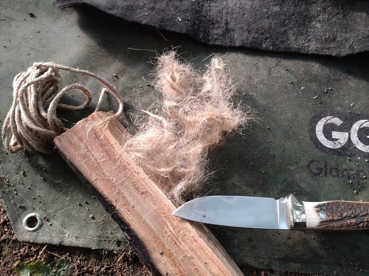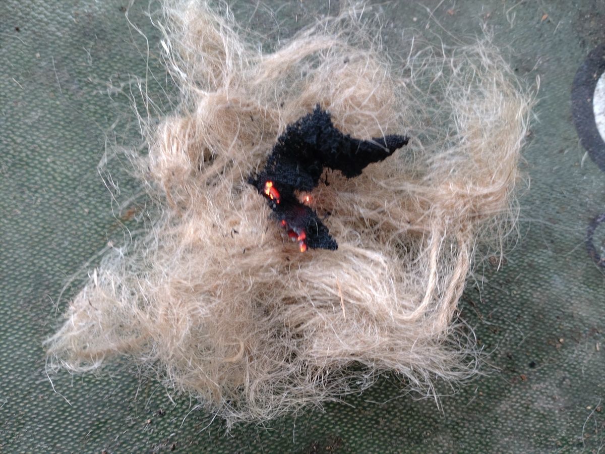 写真でもわかるようにちぎった時に繊維の端が細く出て来て、そこに火打鎌から飛んだ火花が点き易いのです。
