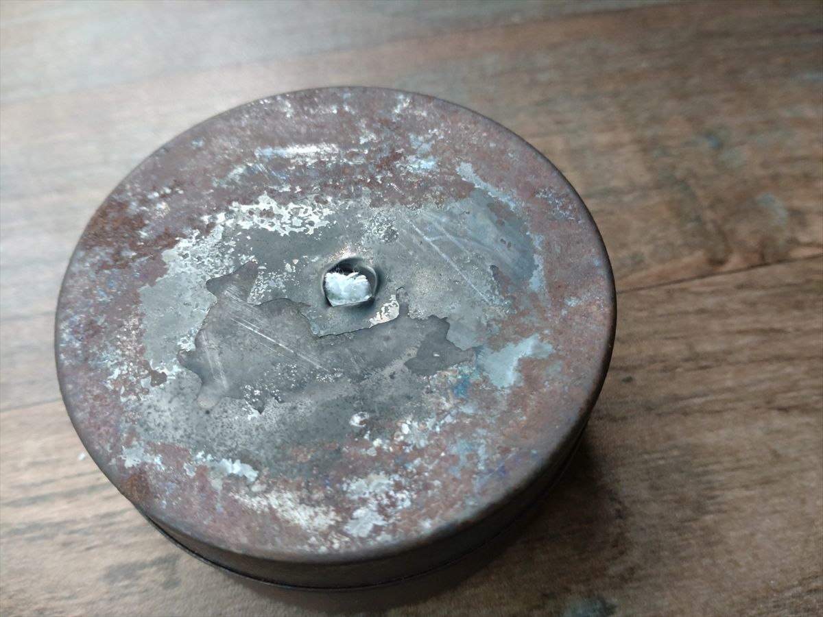Gショックが入っていた缶を使っていますが、缶は中にピッタリ生地を入れられれば鉄製の缶であればどんなモノでも大丈夫です。