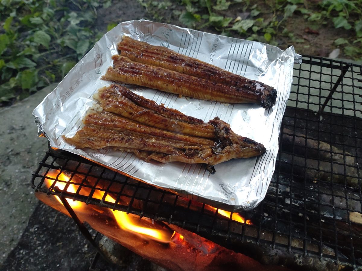 以前串に刺して焼いてみましたが生のウナギでは無く身が切れるので止めています。
