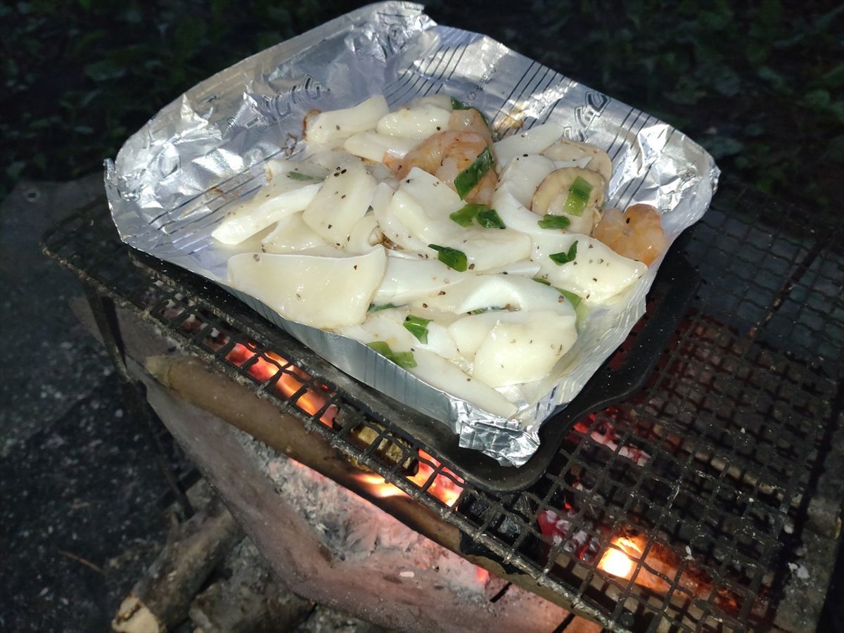 管理人さんからも場内に落ちている枝などは薪でたっぷり使っていいと言われ今日は拾った枝だけで焚火にしました(^^)