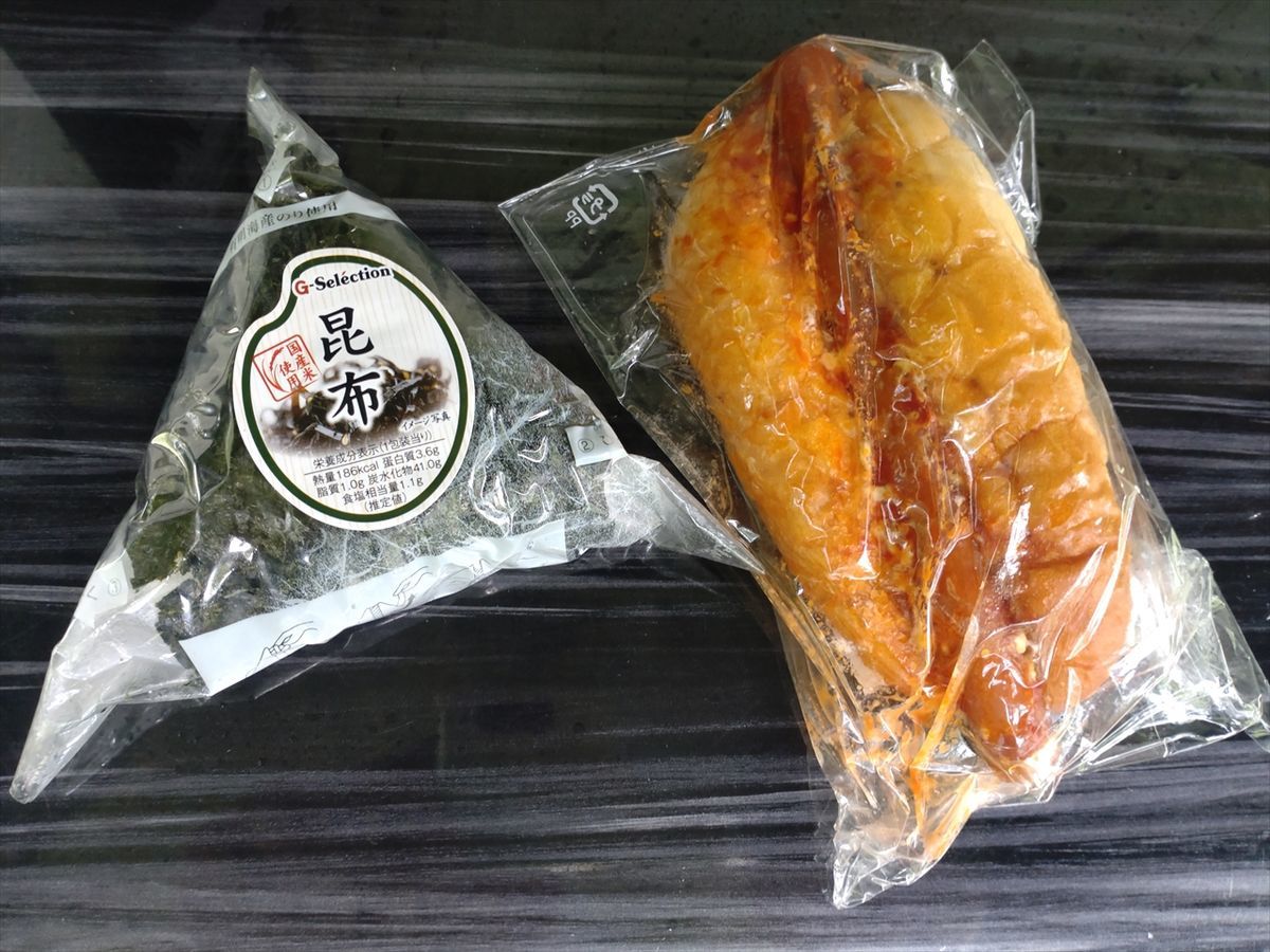 朝食はパンとおにぎりを電子レンジでチンです(^^)