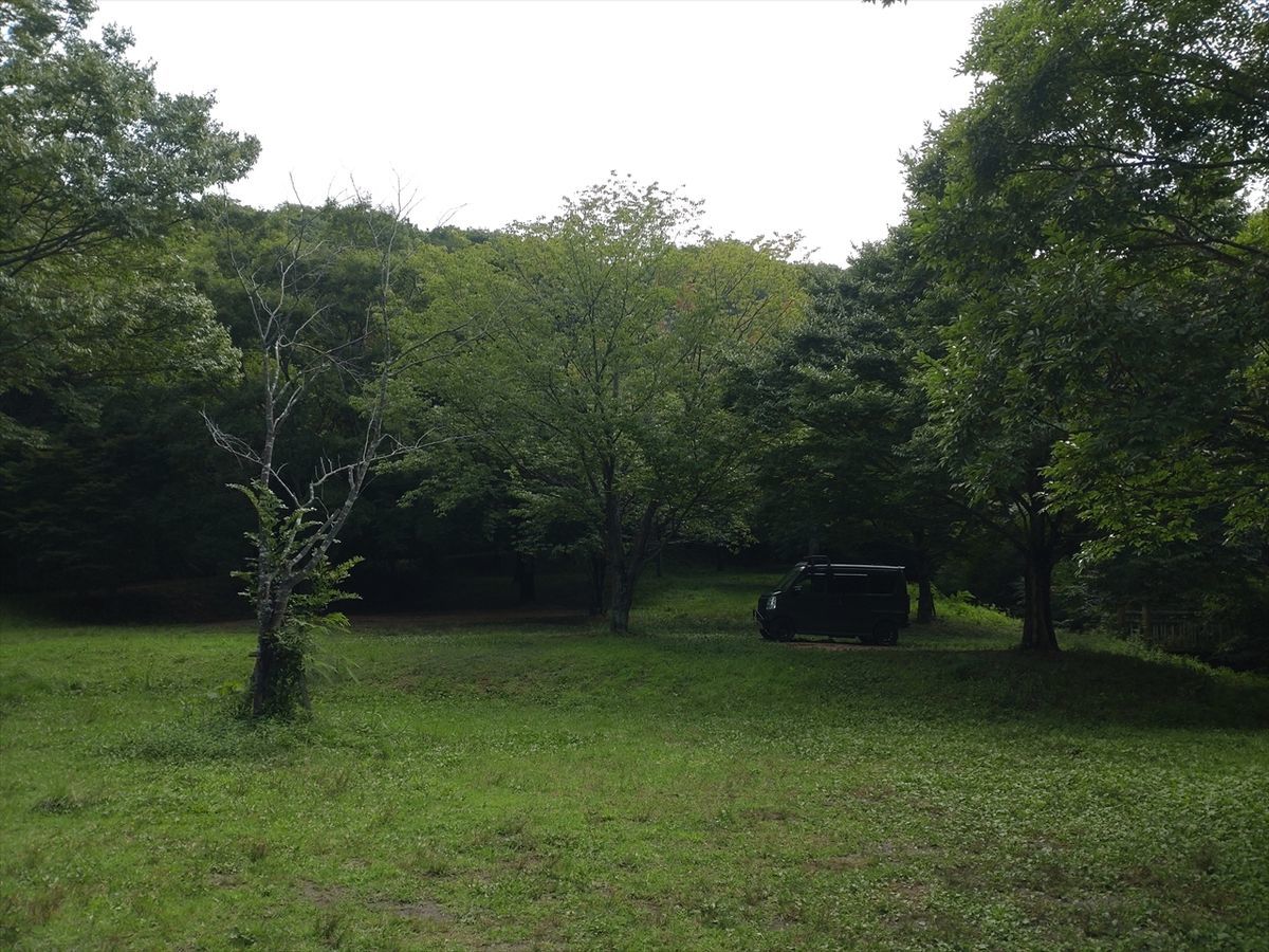 最初は右の道に進んでため池の側にしようかと思っていましたが先にキャンプされている方も居られ、少し上に上がった所の平地も2組キャンプされています。