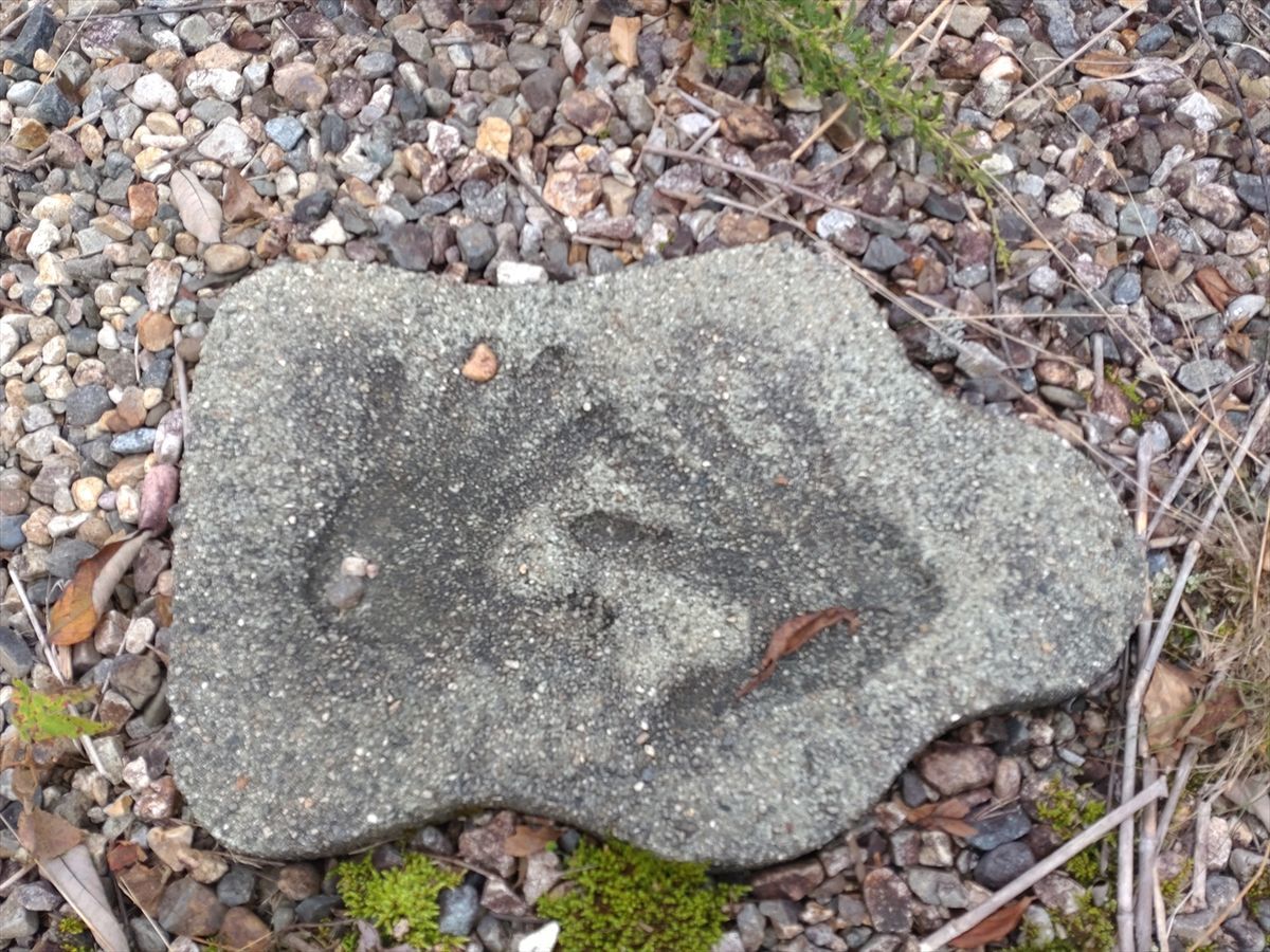 展望場所まで手形のついた飛び石が置かれています。