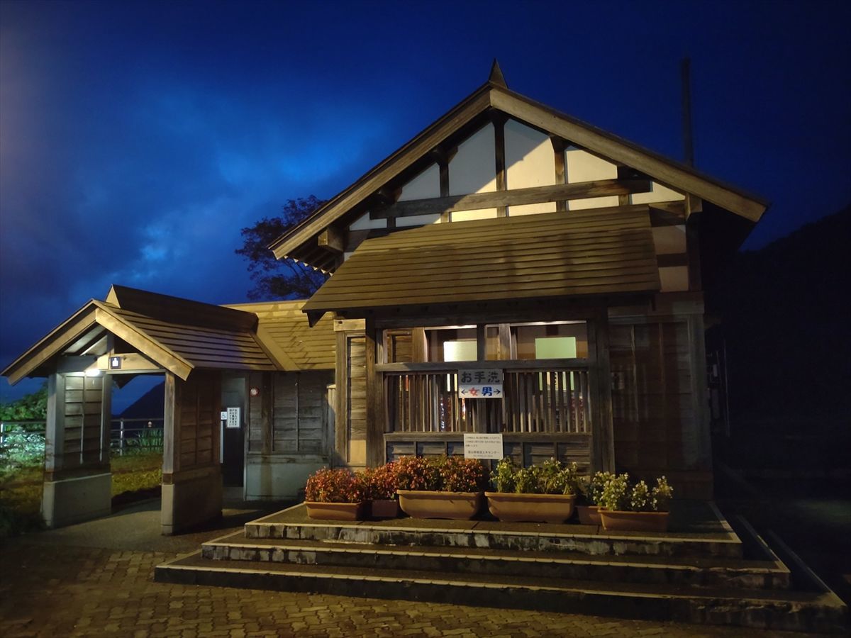 道の駅利賀に行くつもりでしたが手前にある、元の道の駅だったらしい「利賀村高沼パーキング」にトイレで寄ったら、トイレもキレイで交通量もほとんどなく静かなのでここで仮眠することにしました(^^)