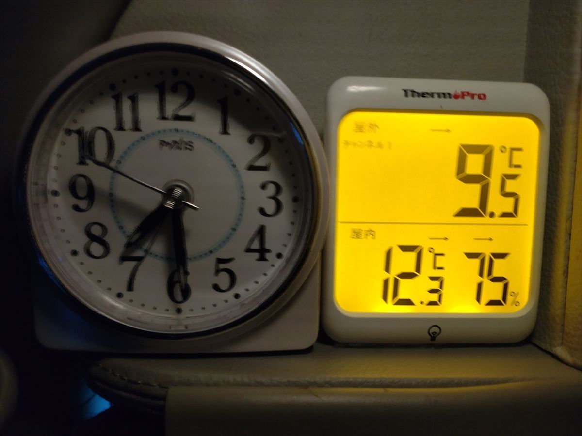 一応モバイルバッテリーで作動する小さな電気毛布を胸から下に掛けてシュラフに入って寝たので、顔以外は比較的暖かく寝ることができました(^^)