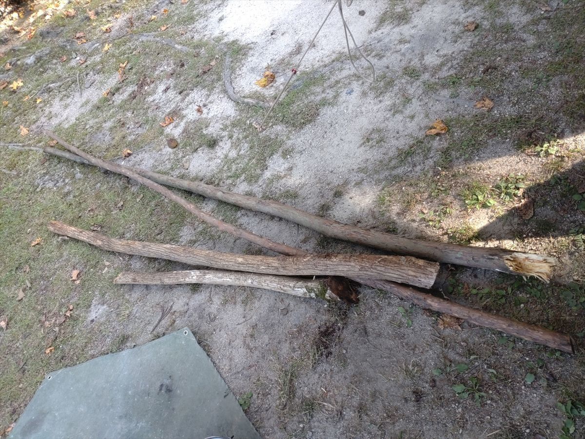 友人がゼッケンを各所に貼りつけたり自転車でキャンプ場内で足慣らししている間に薪になる木を拾ってきました(^^)