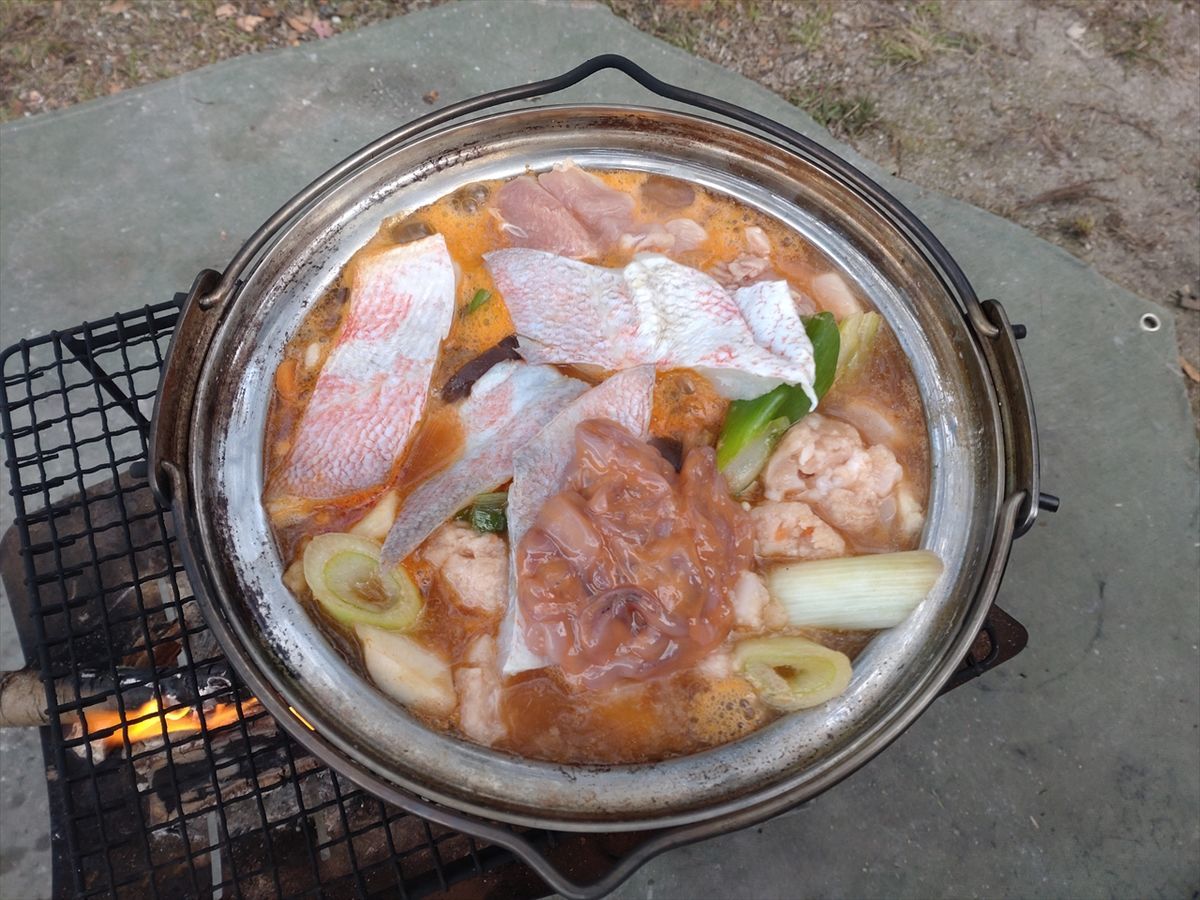 焚き火はいいですね。じっくり時間をかけて煮込めました(^^)