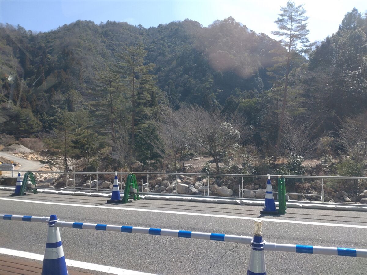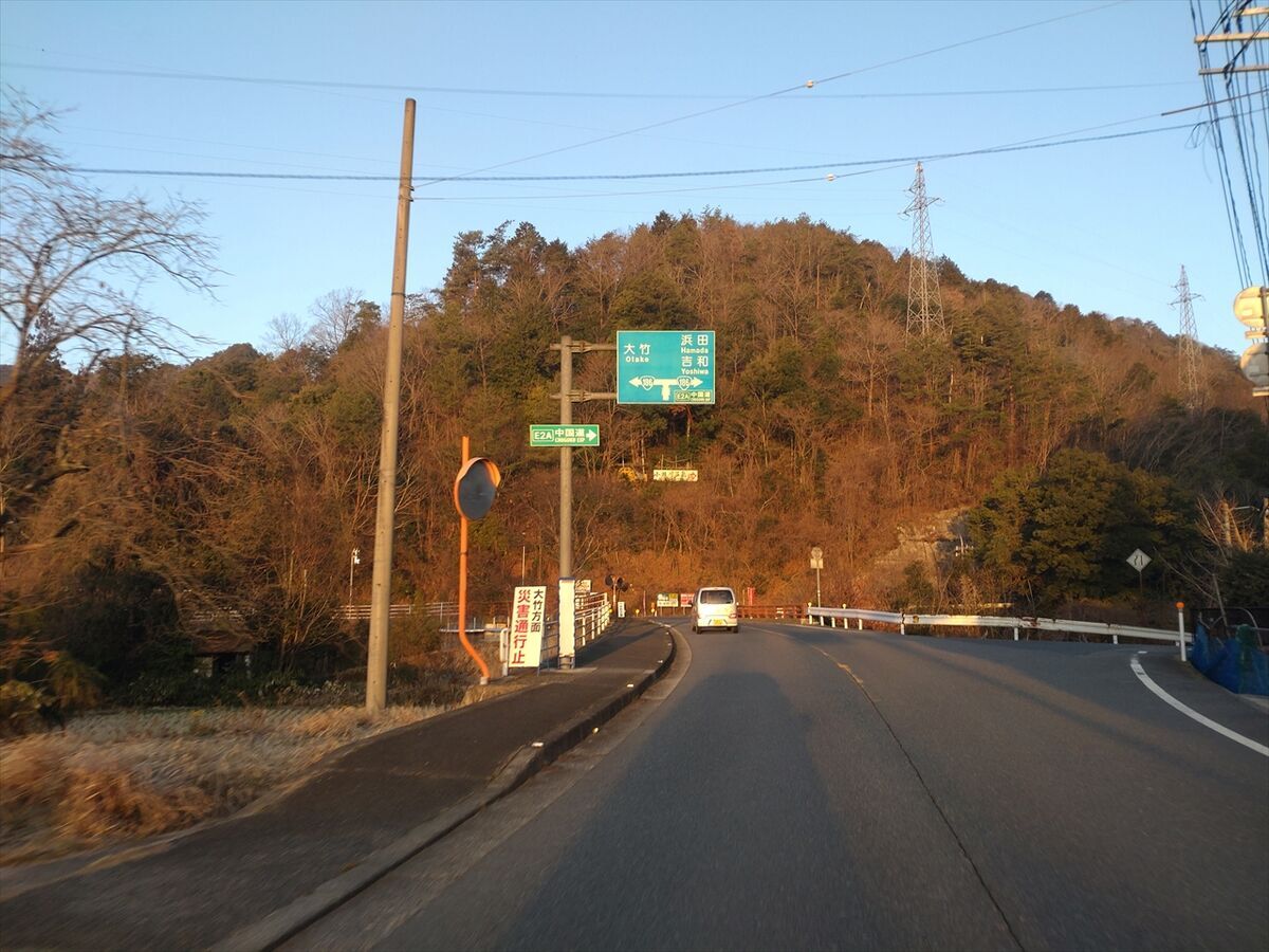 国道186号線の大竹方面は災害通行止めになっています。