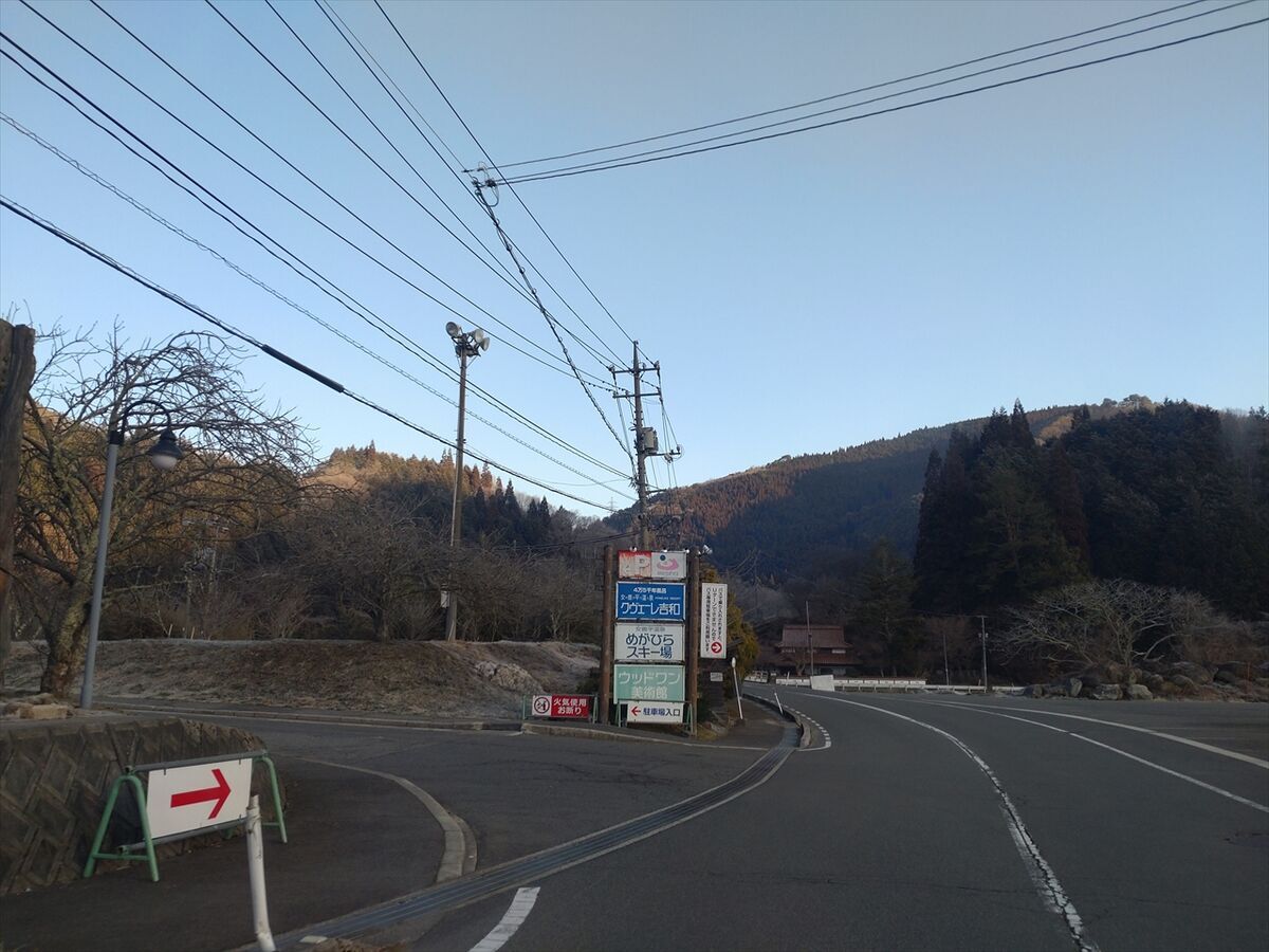 めがひらスキー場の入口が見えてきました。