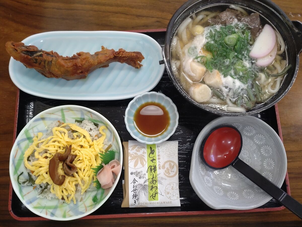 昼食にします。今日は鍋焼きうどん定食にしました(^^)