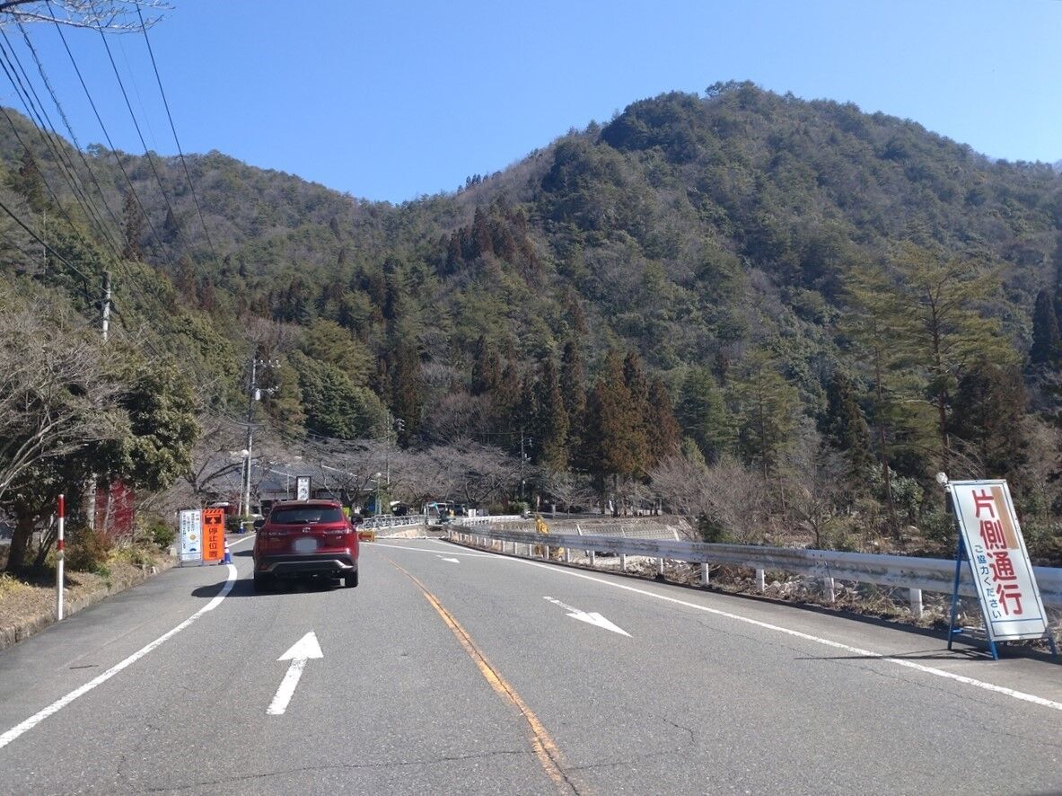 途中道路工事のため片側交互通行になっています。