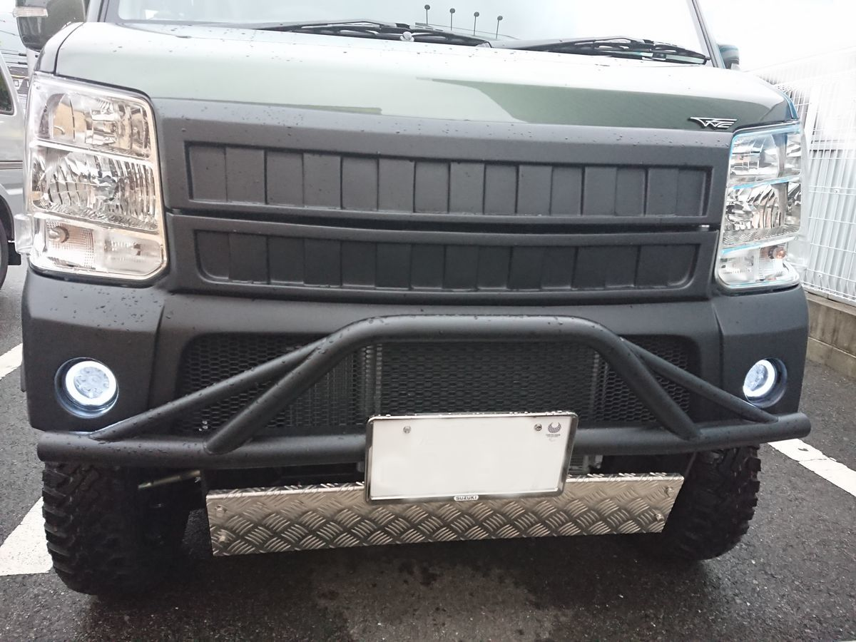 構造等変更検査で新たに車検証が作られるため、これまで指定部品として取り付けていたカンガルーバーや後の鋼管バンパー、ワイドバイザーも軽自動車枠の長さや幅を超えます。