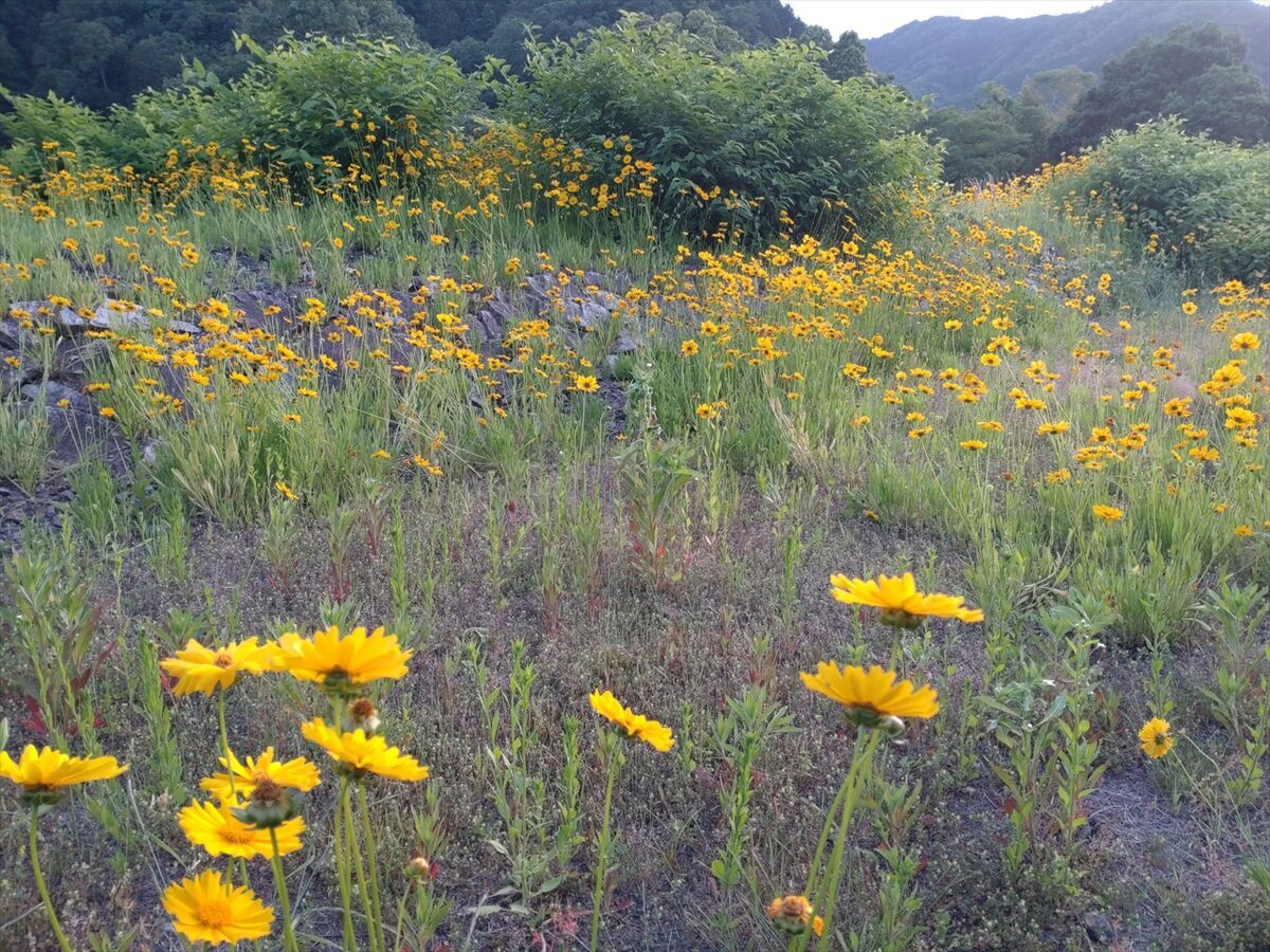 駐車場側には黄色の花がたくさん咲いていました。