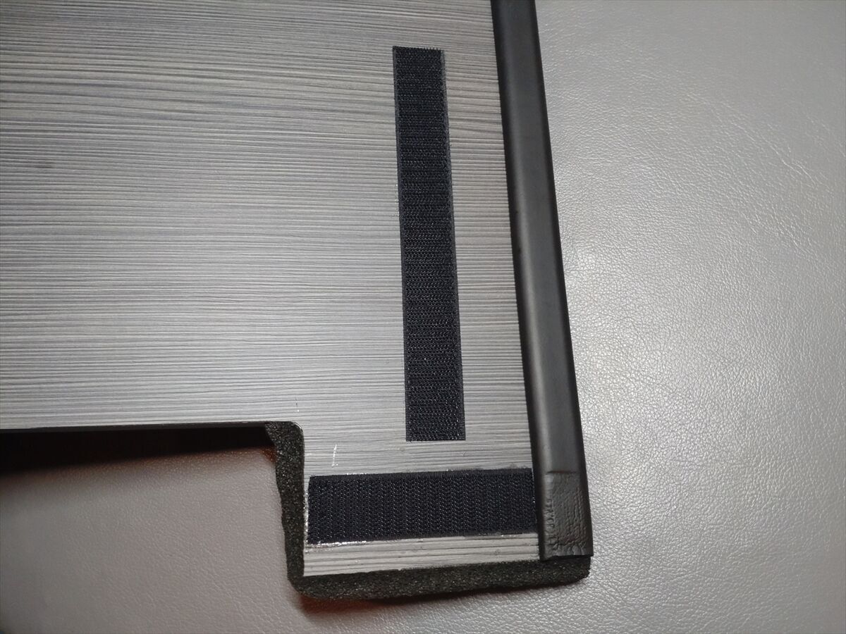 テーブル側も棚受けの位置変更に合せてマジックテープを貼り直しました。