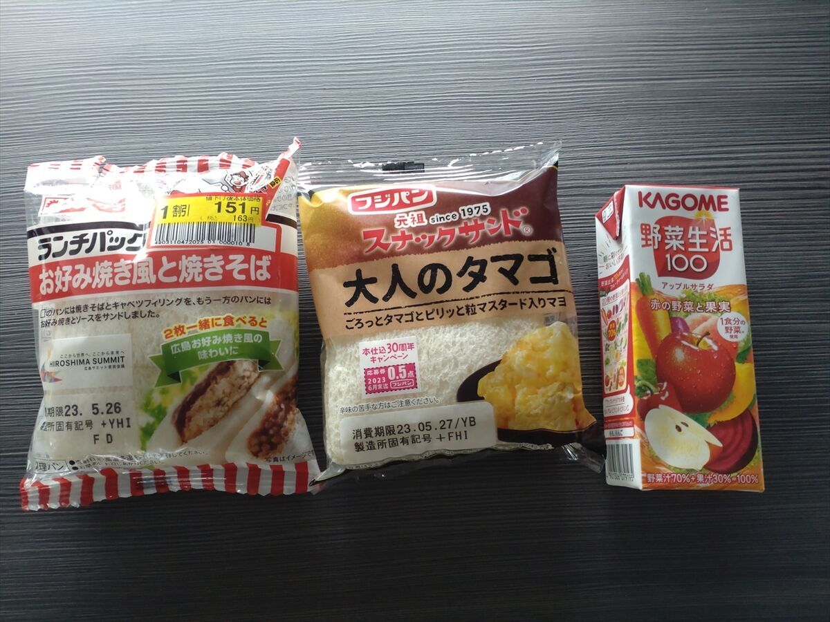 明日の朝食と今日の夕食です。新作のランチパックもありました(^^)