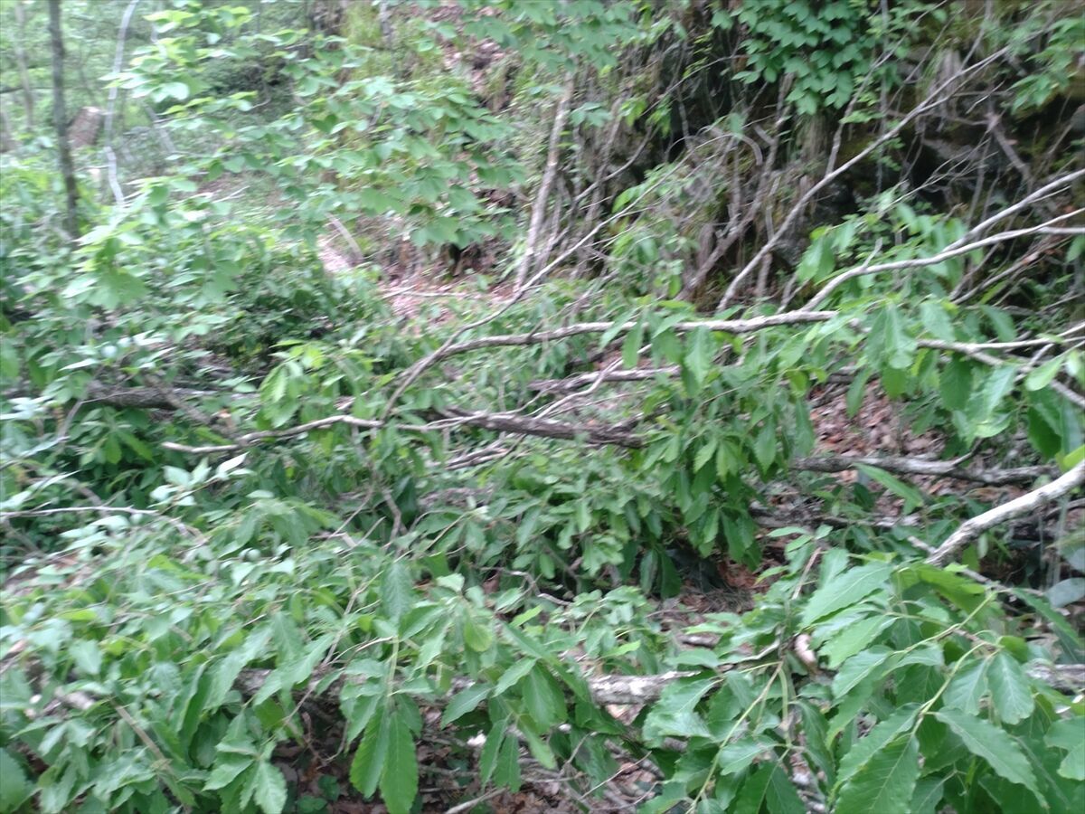 帰りは一度通った道なので少し急ぎ足で帰りたいのですが、笹や木の枝が行く手を阻みます(^^;