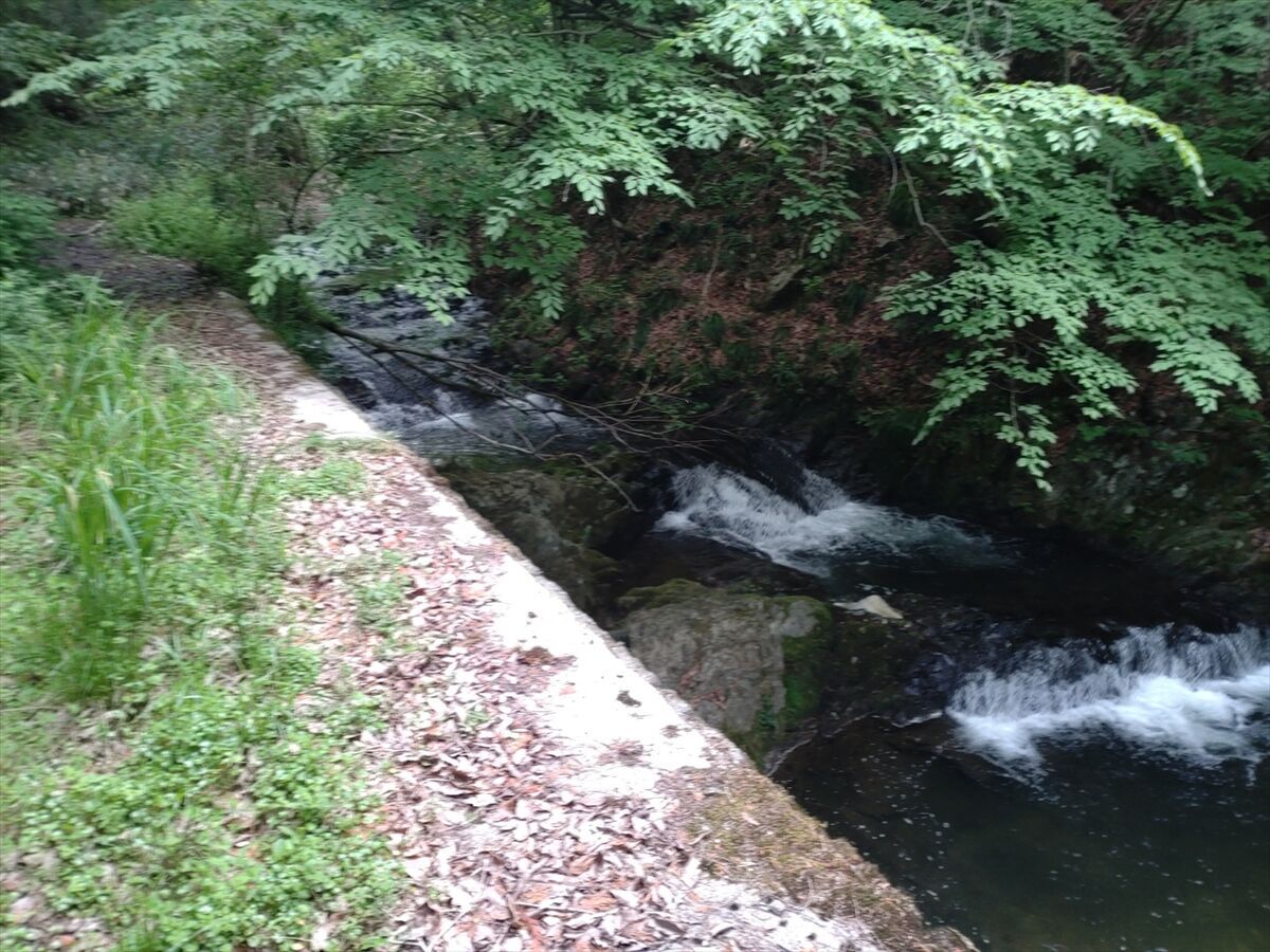所々上の方に新道のガードレールが見えたり車の音がするので、上に上がって戻りたいのですが急過ぎて上がれないので諦めて来た道を藪漕ぎしながら戻りました(笑)