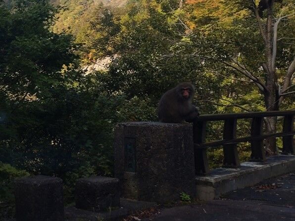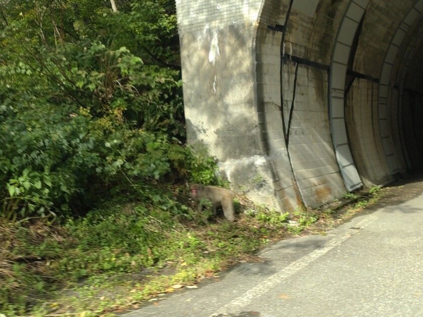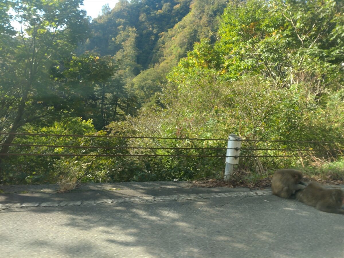 この辺りは日当たりが良くサルが群れで道路の上や横に沢山出て来てひなたぼっこをしていました(^^)