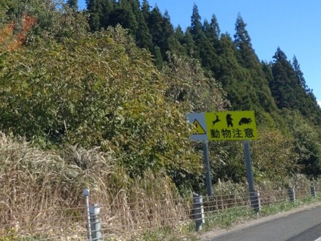 動物が3つ描かれた注意看板も良く見かけました。