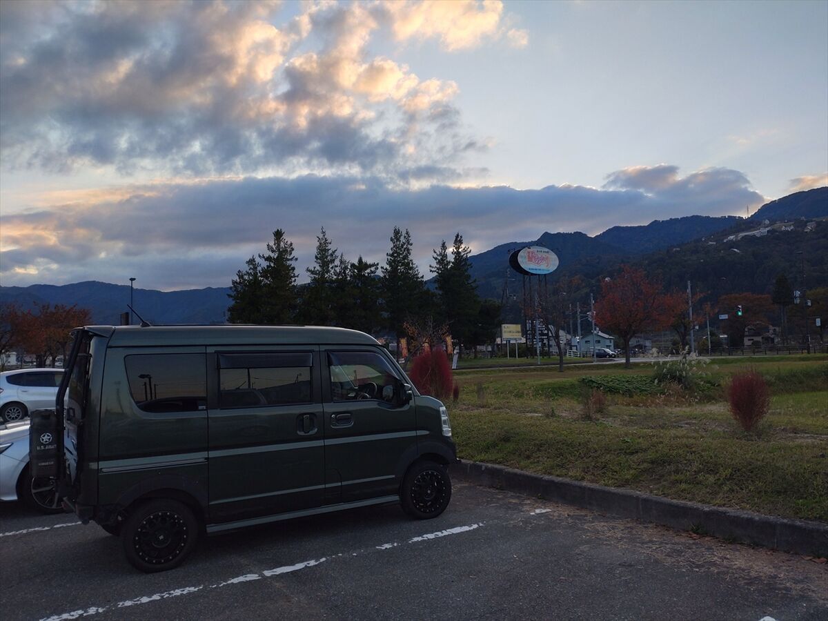 夜寒くなったらFFヒーターを使うつもりで離れた所に車を置きましたが、後から隣に車が来たり、他の場所が空いたりしてトイレに近い別の場所に移動しました(^^)