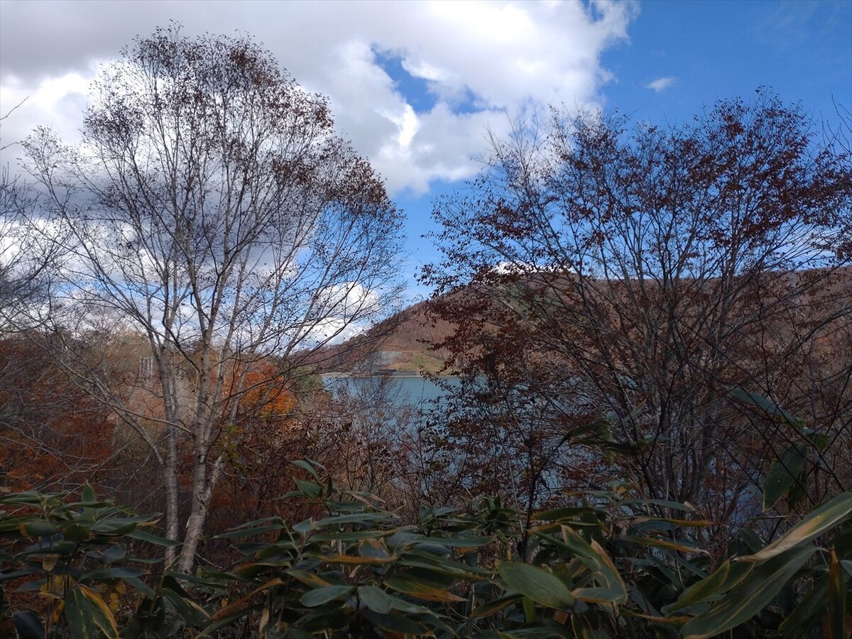 木の枝の間から田代湖が見えます。